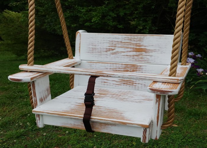 These Distressed Style Kids Seat wooden tree swings are carefully crafted, sanded and routered for a superior level of comfort and visual appearance. All of our wood tree swings ship free in the continental 48 states of the USA. These products are never outsourced and all of our swings are crafted right here in North Carolina in the USA.